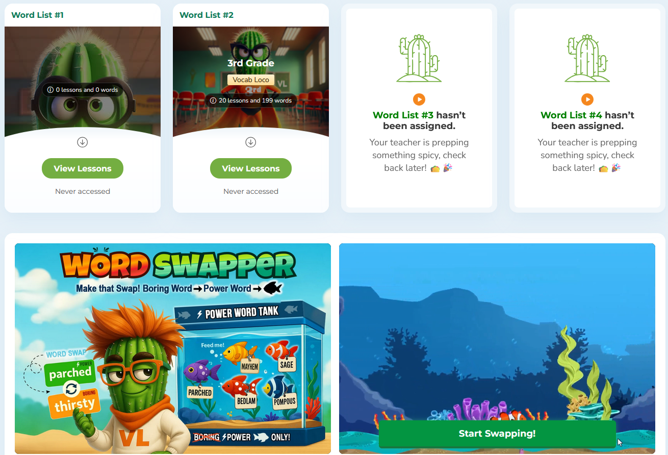 This bonus feature is located under Word Lists on your dashboard — just scroll down and look for the Start Swapping! button.
